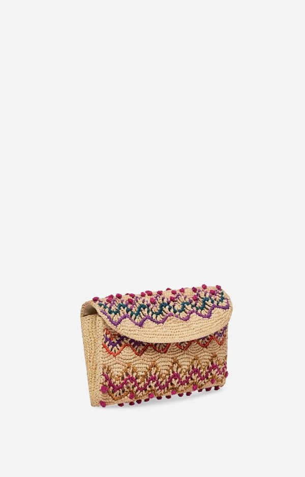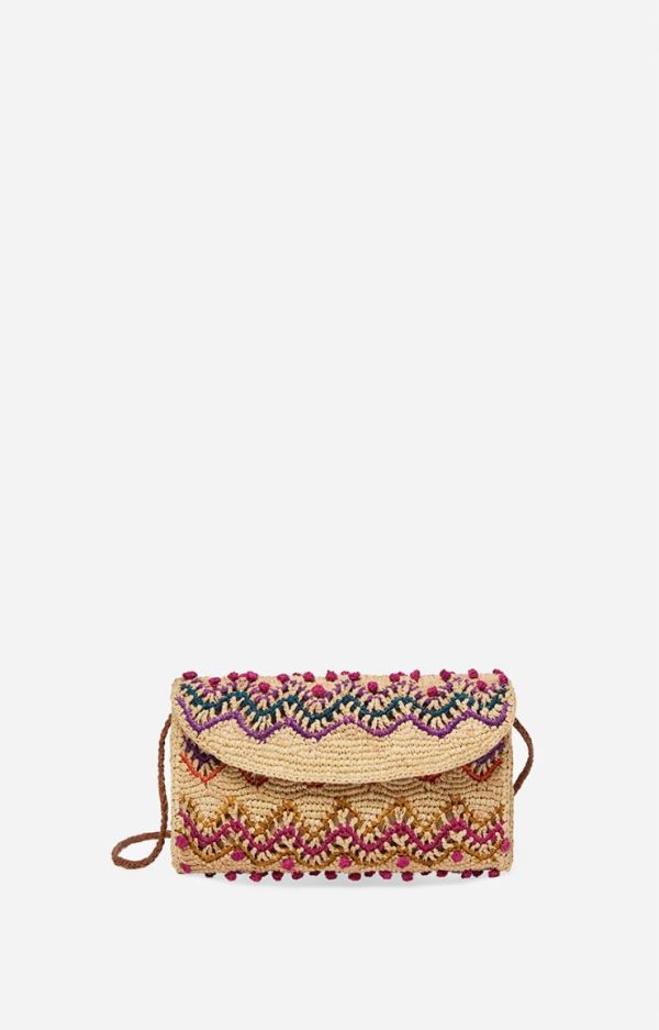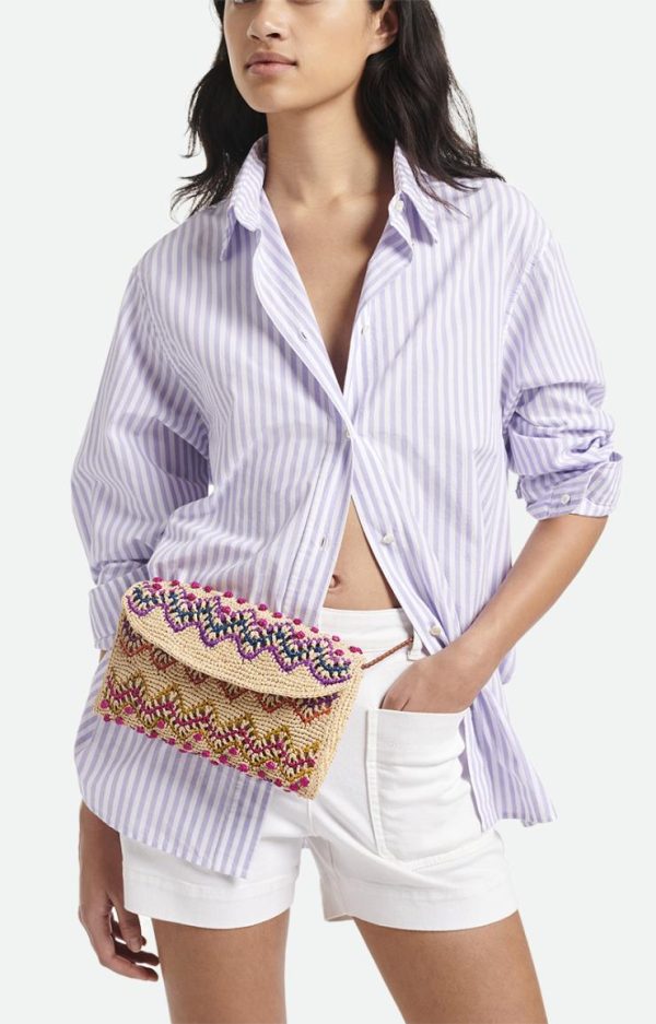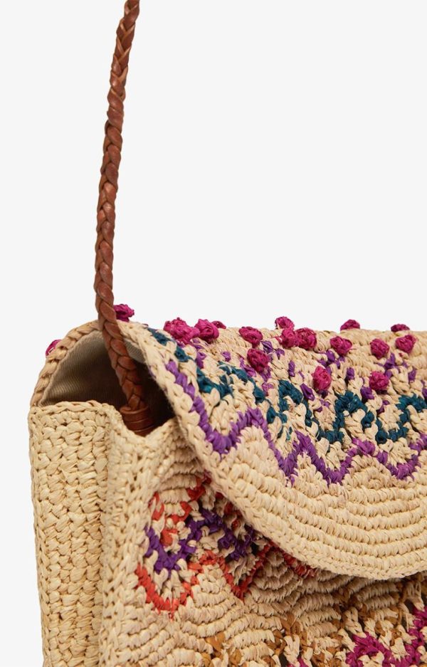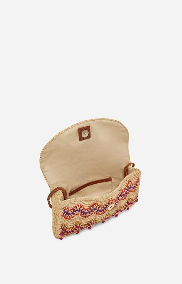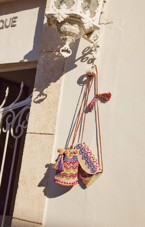 On adore ce clutch très féminin à porter le soir pour profiter des longues soirées festives de l’été. En raphia naturel et décoré de raphia coloré, orné d’un petit pompon en raphia coloré lui aussi, on le portera à l’épaule ou en crossbody grâce à sa jolie bandoulière de cuir tressé. So chic !