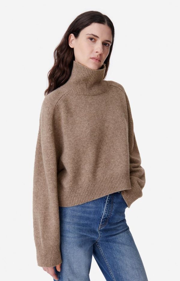Confectionné dans un mélange de laine et de yak, Ballerine est le pull élégant et délicat de la saison Automne-Hiver 2023. Ce modèle se démarque par son large col montant et sa forme légèrment ample et boxy. Aussi casual qu’il est chic, portez-le avec une jupe ou un jean selon vos envies.