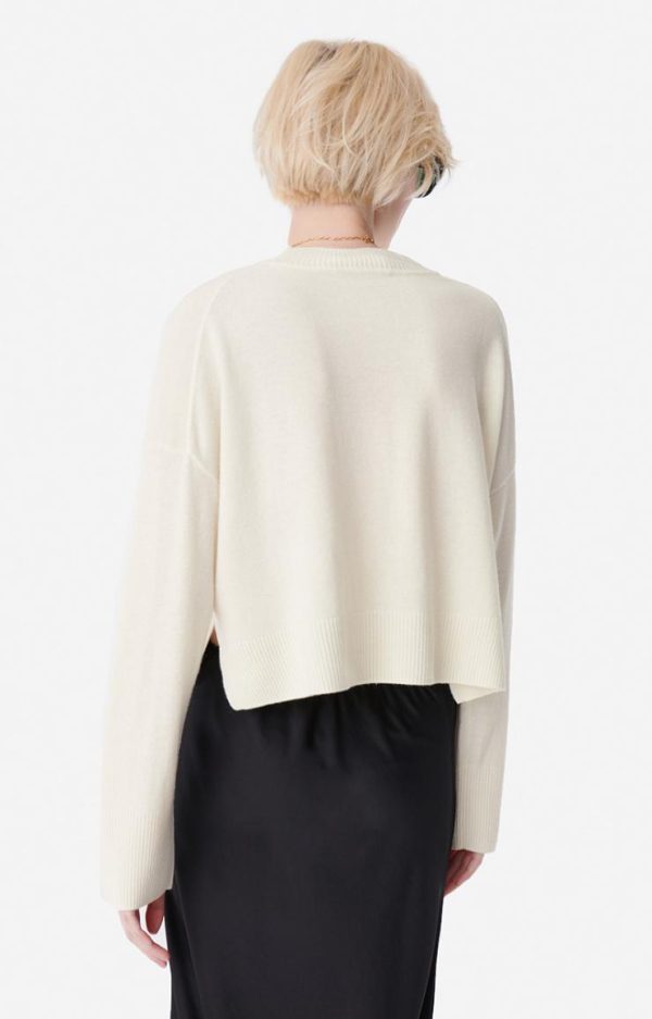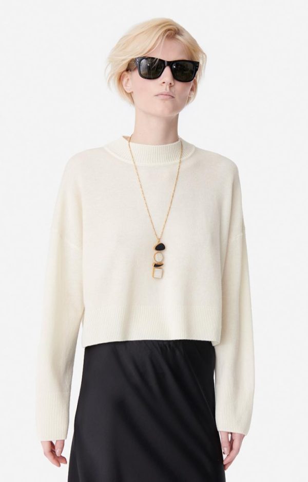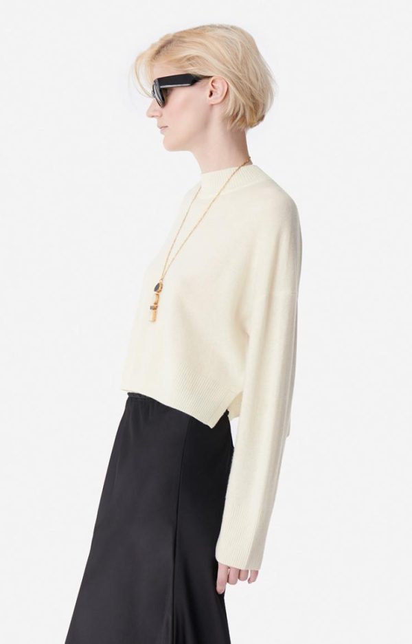 Le pull Carmelle se démarque par ses finitions bords-côtes et son encolure légèrement cheminée. Ce modèle à la coupe boxy et aux manches amples est une pièce versatile à porter au quotidien avec un jean ou une jupe.