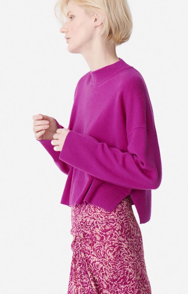 Le pull Carmelle se démarque par ses finitions bords-côtes et son encolure légèrement chemninée. Ce modèle à la coupe boxy et aux manches amples est une pièce versatile à porter au quotidien avec un jean ou une jupe.