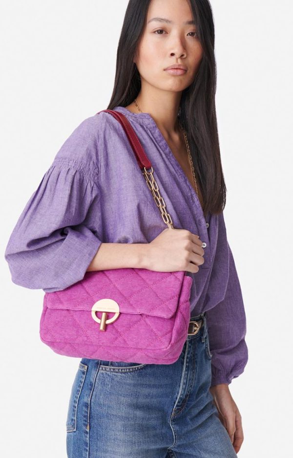Grand classique de la maison Vanessa Bruno, le sac Moon est ici revisité dans une version en lin. Légère et estivale, cette mouture matelassée est rehaussée d’un élégant matelassage et se porte aussi bien à l’épaule qu’en croisé grâce à sa bandoulière en chaîne et cuir.