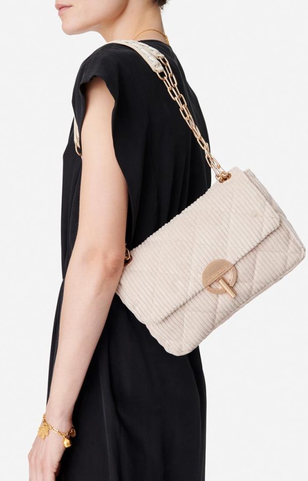 Léger et versatile, le sac Moon de Vanessa Bruno se présente en velours côtelé pour cette saison d’automne. Toujours doté de sa bandoulière chaîne, ce modèle a tout pour devenir votre meilleur allié du quotidien. Porté épaule ou cross body ? À vous de voir.