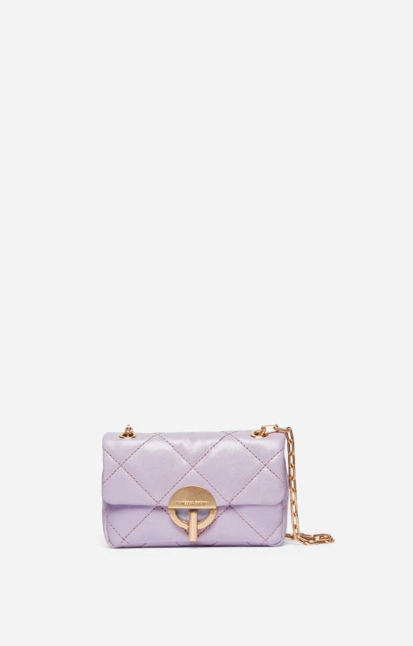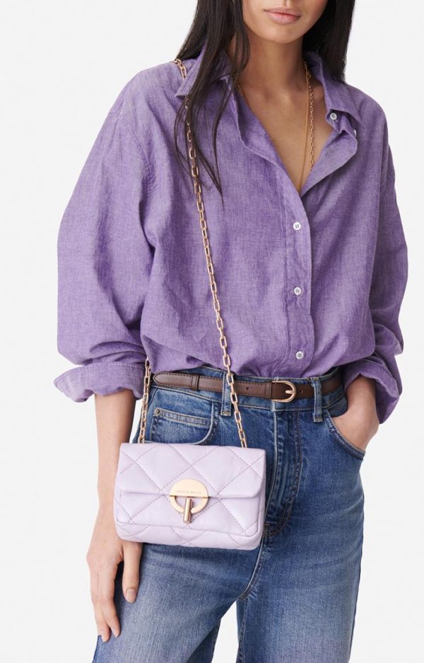 Place à la nouveauté avec cette version nano de notre emblématique sac Moon ! On y glisse son téléphone, son portefeuille, ses clés et nous voilà prêtes à profiter de notre journée en toute légèreté. Chic et versatile, ce modèle à la ligne délicate s’habille ici de cuir craquelé matelassé et est une fois de plus doté de son iconique fermoir rond.