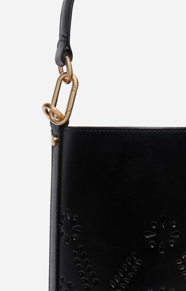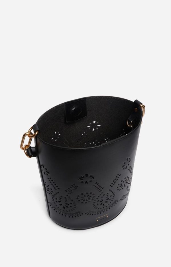 Classique bohème de la maison Vanessa Bruno, le sac seau Holly est aussi fonctionnel qu’il est élégant. Réalisé en cuir lisse, ce modèle à la silhouette épurée est doté d’une bandoulière interchangeable. Un véritable classique, versatile, chic et sans effort, revisité cette saison dans une version ajourée, qui s’ajoute encore à son charme.