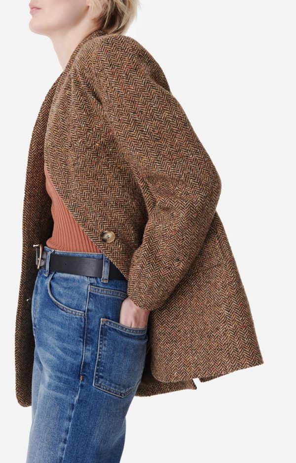 Notre veste en laine Jovanka est un de nos plus beaux succès. Avec son col enveloppant et sa ligne droite et structurée, cette pièce se porte aussi bien avec un jean qu’avec une robe bohème.