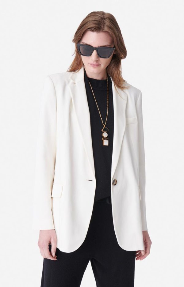 La veste Tilia est le blazer à la coupe intemporelle et indémodable. Structuré, ce blazer à la ligne masculine est adapté pour une silhouette plus féminine, on l’aime porté sur une robe de soirée ou nos robes inspiration lingerie. Portez-la avec le pantalon Nunes pour un total-look parfait.