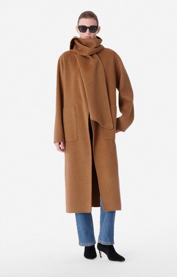 Manteau Valeran Kaki Vanessa Bruno – Manteau Long en Laine Mélangée avec Écharpe et Ceinture Amovibles