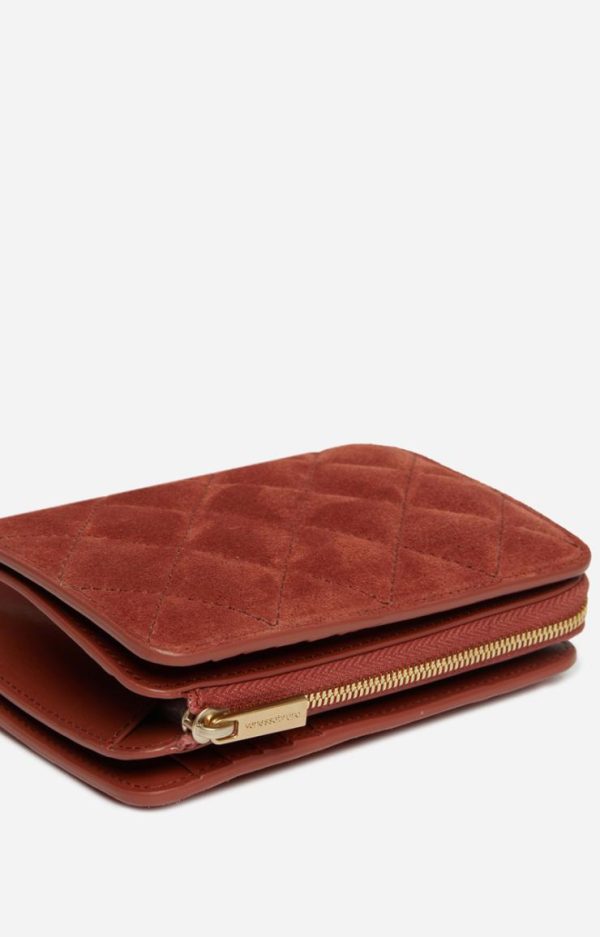 Portefeuille Femme Vanessa Bruno en Suède Matelassé – Zippé avec Compartiment Monnaie et Porte-Cartes