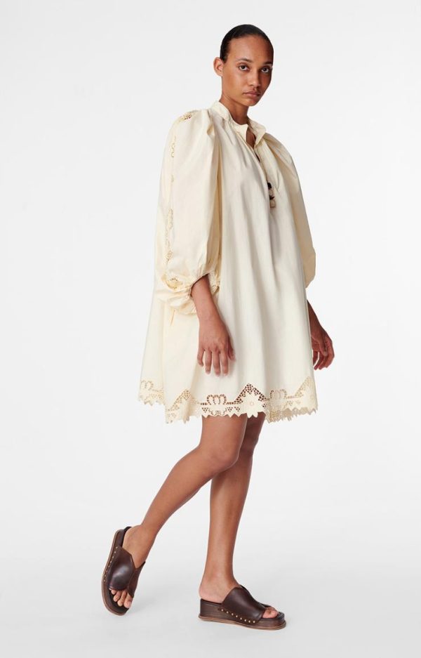 Robe Veronica Noire Vanessa Bruno – Broderies Blanches, Manches Froncées et Tissu Viscose Léger