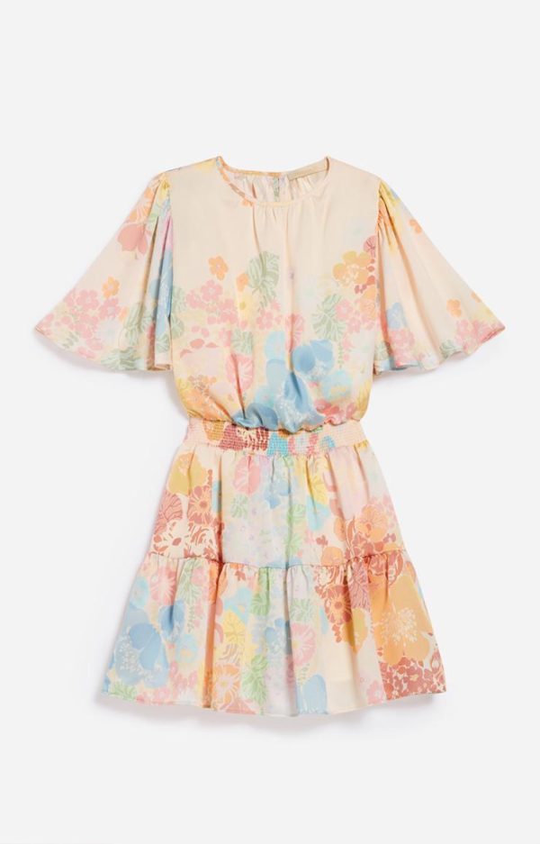 Robe Vanessa Bruno Romea Multicolore à Volants – Taille Smockée et Manches Courtes