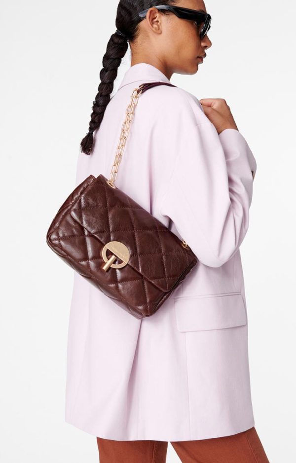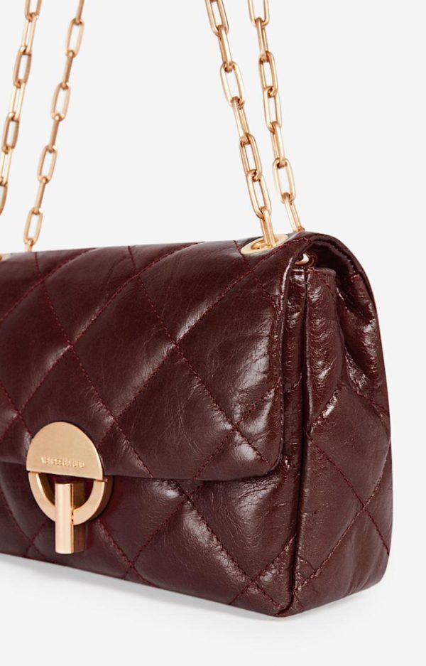 Sac Moon Vanessa Bruno en Cuir Craquelé Matelassé – Bandoulière Chaîne Dorée – Violet/Vert