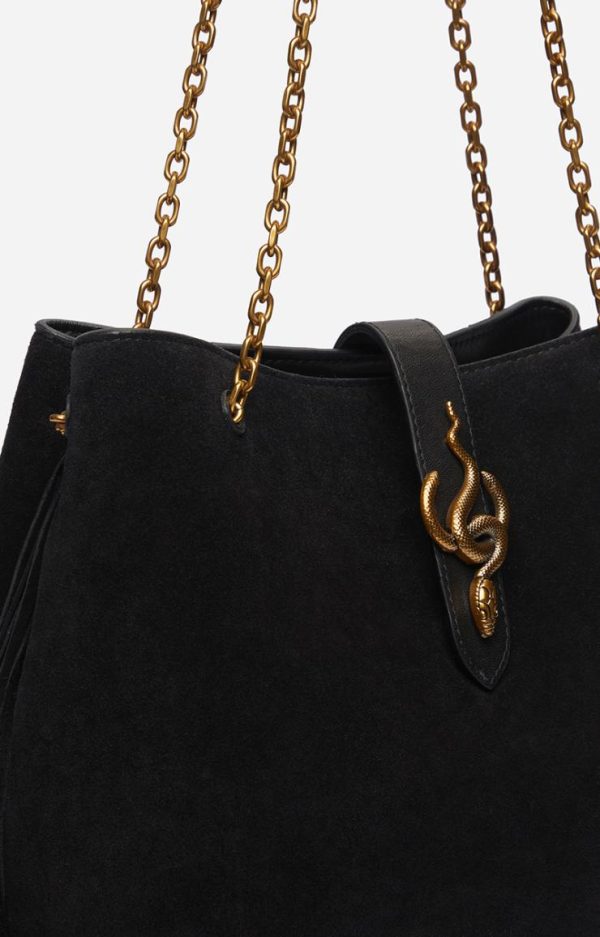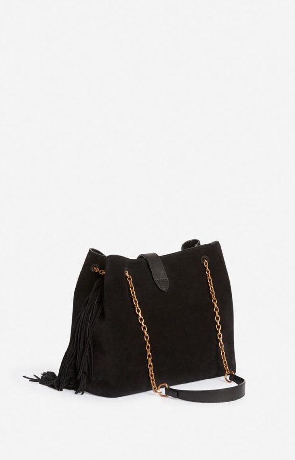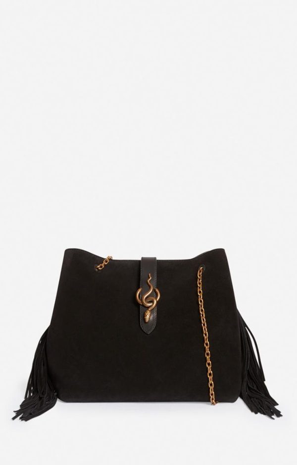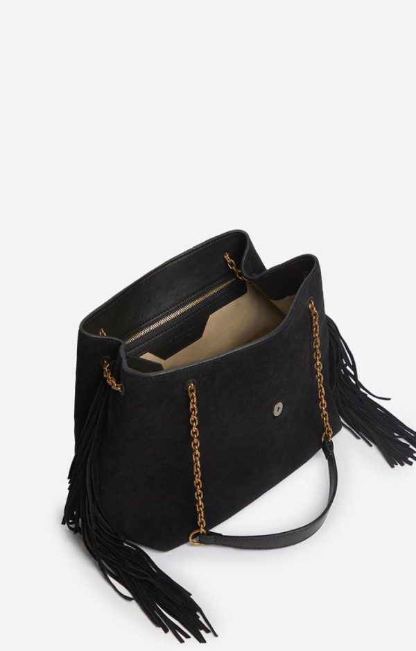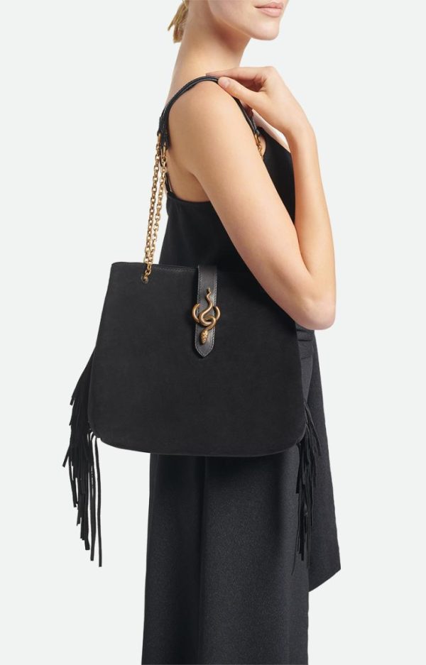 Vanessa Bruno Grand Sac Bourse Cléo Noir en Suède à Franges et Fermoir Serpent