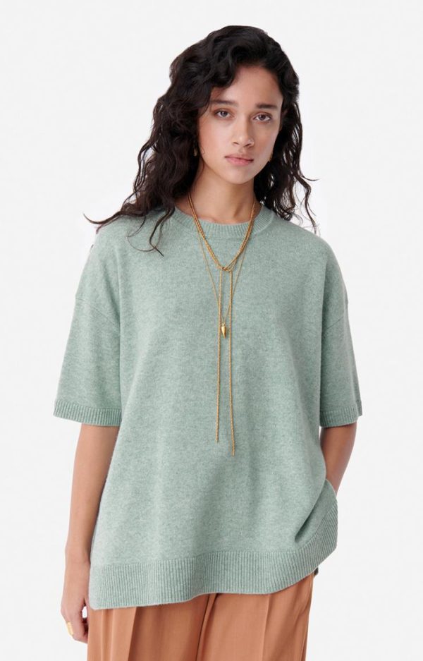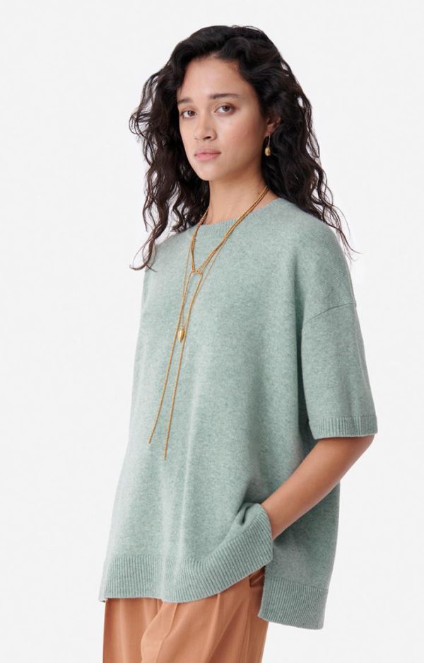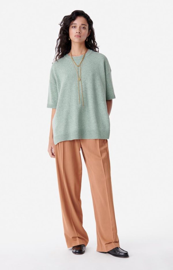 Vanessa Bruno – Pull Femme en Laine Mérinos Oversized Vert Capucine, Manches Courtes