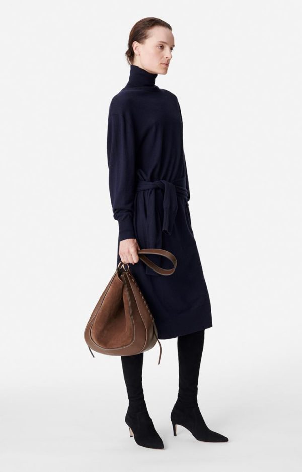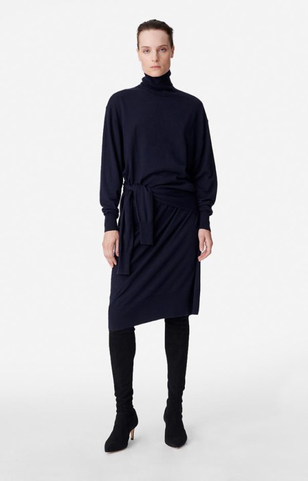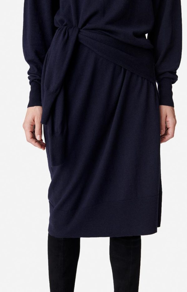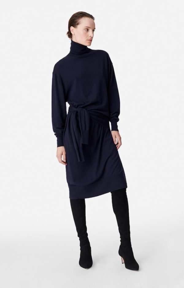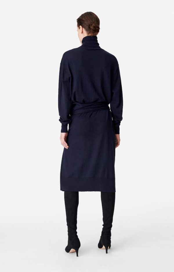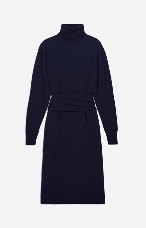 Vanessa Bruno Robe Baltilda Bleu Marine – Robe-Pull en Laine Mélangée à Ceinture Nouée