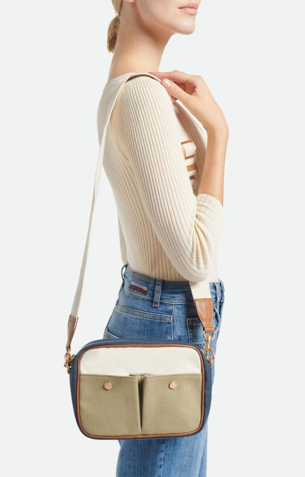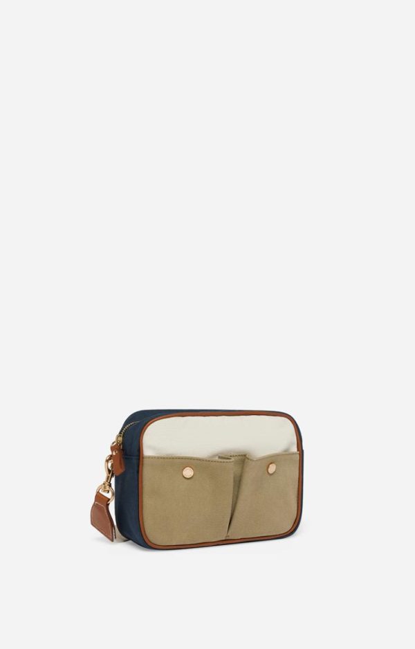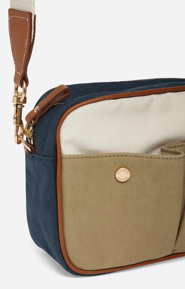 Vanessa Bruno – Sac Camera Femme en Toile et Cuir – Multico/Marine – Bandoulière Amovible