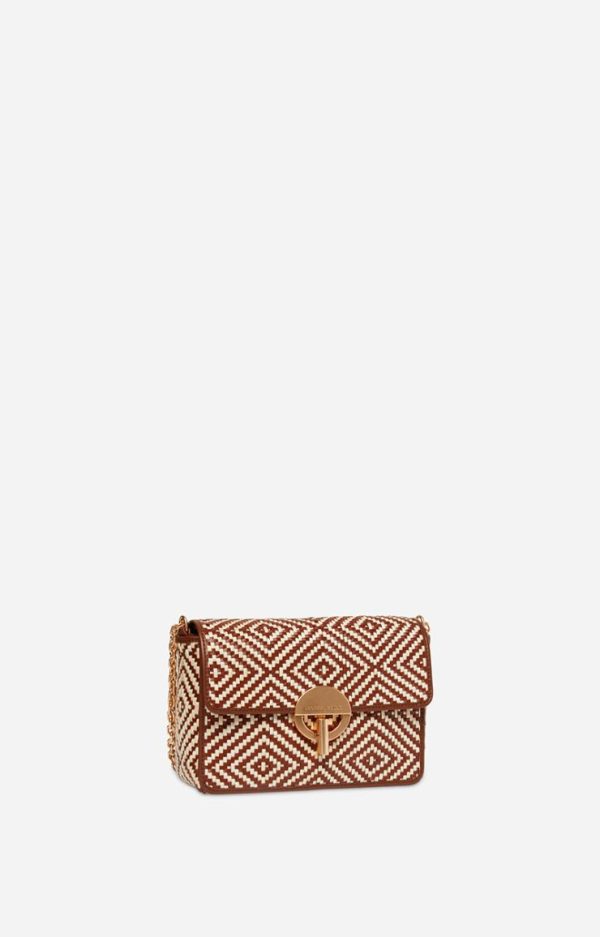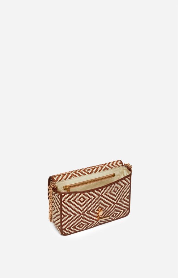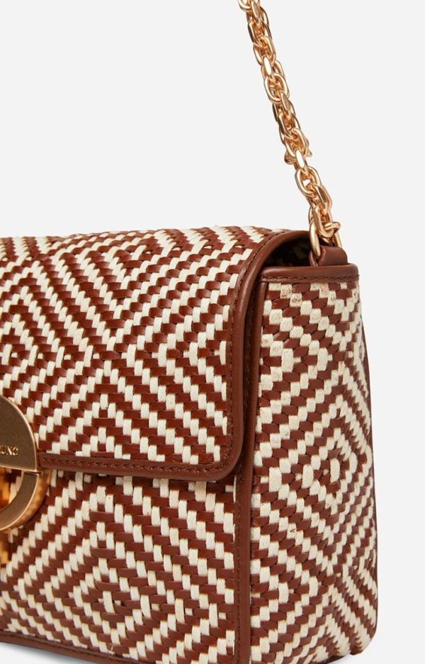 Vanessa Bruno Sac Moon en Coton et Cuir Tressé Cognac – Bandoulière Chaîne Dorée